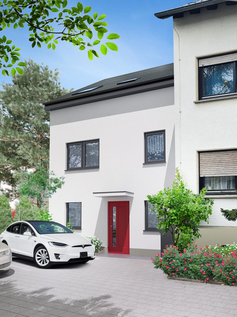 Das Bauvorhaben umfasst die Errichtung eines einseitig angebauten Einfamilienhauses . Das Gebäude verfügt über Erd-, Ober- und Dachgeschoss, sowie zwei Außenstellplätze.